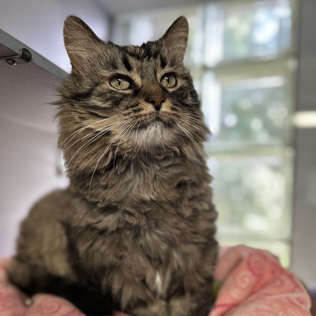 Looking for a sweet senior to love? Look no further! Ash is a handsome medium hair tabby with big green/gold eyes. Ash is a sweet and mellow cat who has a gentle soul. Ash's serene nature makes him perfect for a quiet home where he can relax and receive the love he deserves. His ability to get along with other cats also makes him an ideal candidate for households with existing pets. Adopting Ash means giving a gentle, loving home to a cat who will enrich your life with tranquility and affection. Ash does have a sensitive tummy and will need to be on a sensitive stomach diet. Come meet him or apply at ghhs.org