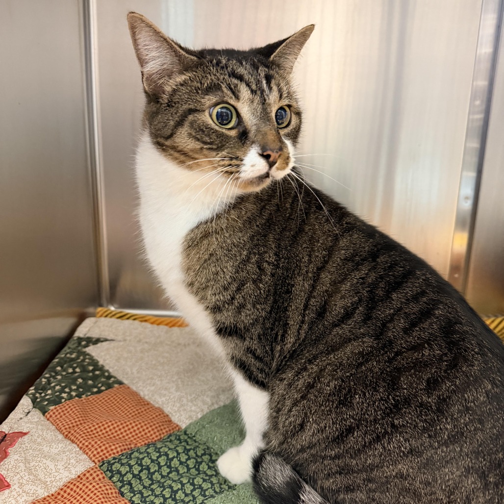 Meet Ashby, a handsome tabby-and-white gentleman with a heart as soft as his fur. This sweet boy starts out a little shy, but once he feels safe, he blossoms into a gentle companion who loves nothing more than a cozy spot to lounge. Ashby gets along wonderfully with other cats and would be happiest in a calm home where he can settle in at his own pace. If you’re looking for a peaceful buddy to share quiet afternoons and warm evenings, Ashby is your guy. Apply at ghhs.org