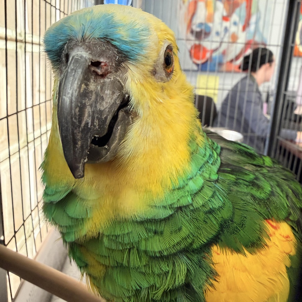 Bert is a male Amazon parrot with a big personality and a thoughtful heart. After sadly losing his owner, Bert is learning how to adjust to a new chapter in life. He wants to trust and connect, but he will need patience, time, and gentle guidance as he continues working on socialization. Bert has a fatty tumor, which has been fully evaluated and cleared by a veterinarian, and it does not stop him from enjoying his daily routine. He will thrive best with an experienced and understanding parrot owner who knows that trust is built slowly and that progress comes with consistency. He loves treats (especially peanuts!) and spends his time trying to bug his friend Ernie. Bert is full of charm, curiosity, and silly antics, and he’s sure to make you smile. Amazon parrots are intelligent, long-lived companions, and Bert is looking for a long-term commitment with someone who understands the responsibility and reward of sharing life with a parrot. In the right home, Bert has the potential to form a meaningful bond and become a truly special companion. If you have experience with parrots and the patience to let Bert move at his own pace, he may be the perfect bird to welcome into your home.