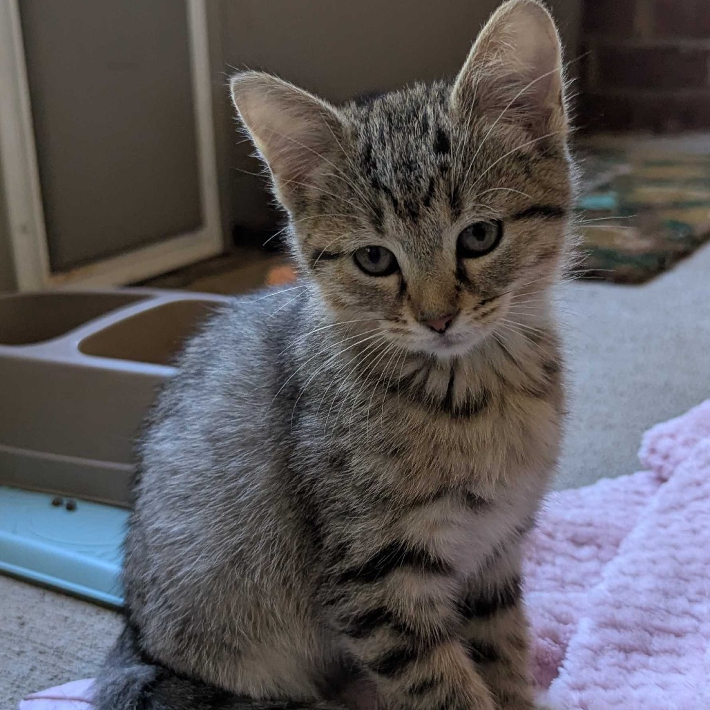 Meet Cinnamon! This sweet light brown tabby is the calm, gentle twin of Nutmeg. A little shy at first, she loves quiet cuddles and playful moments with her siblings. Cinnamon’s soft purrs and tender personality make her a lovable, easygoing companion who’ll warm your heart in her own gentle way.