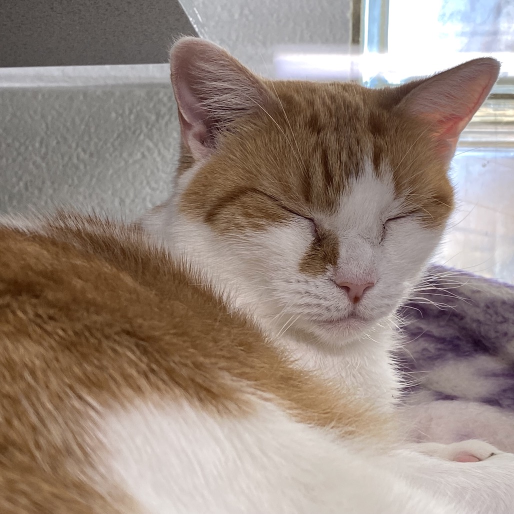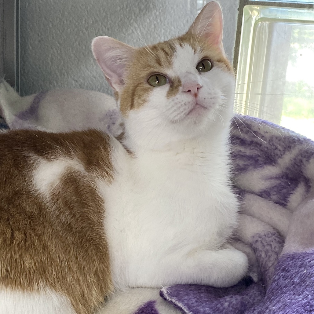 This is GENEVA! She is a sweet, outgoing lady who is looking for a bit of peace and quiet. Geneva is friendly and relaxed in the company of humans and will make a great companion around the house. Geneva has a snowy white coat, accented with flashes of bright orange tabby. Her eyes are a lovely, gemmy green. Drop by GHHS and check this pretty girl out.