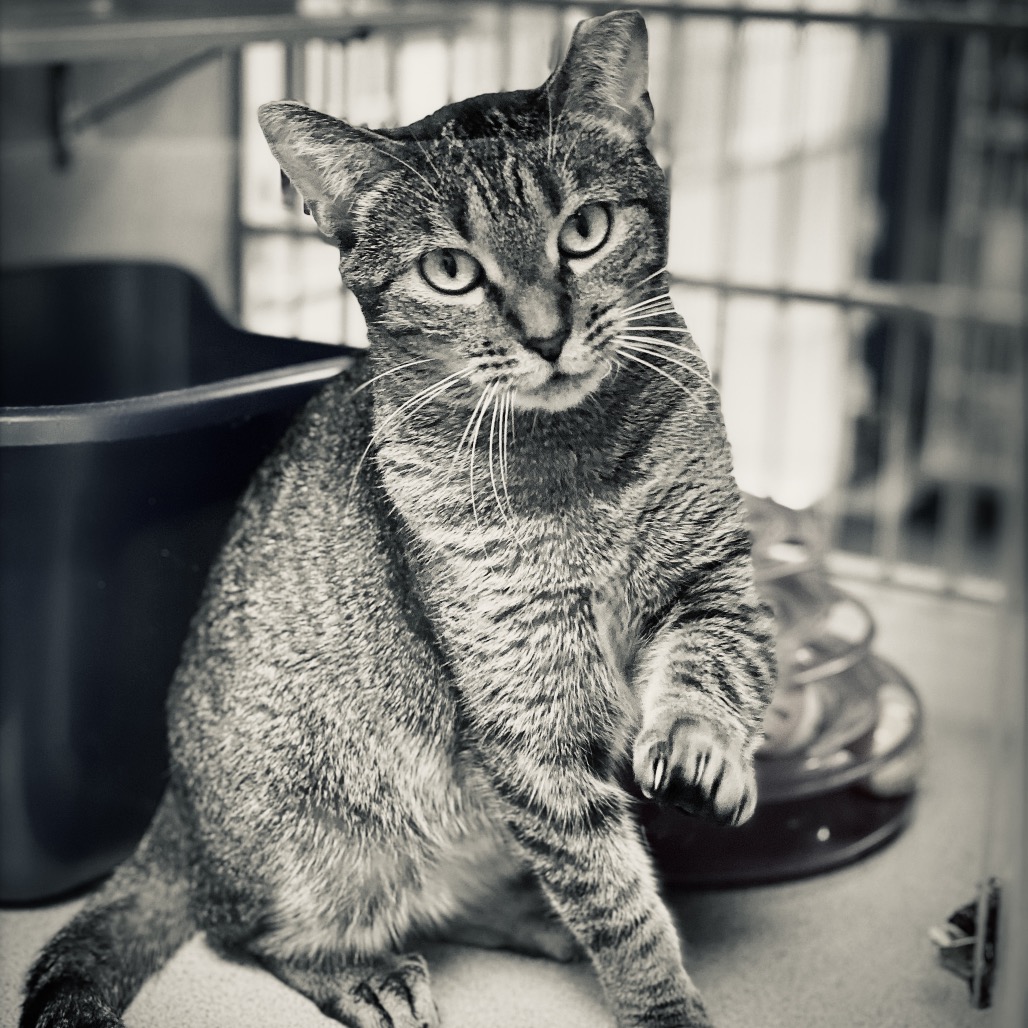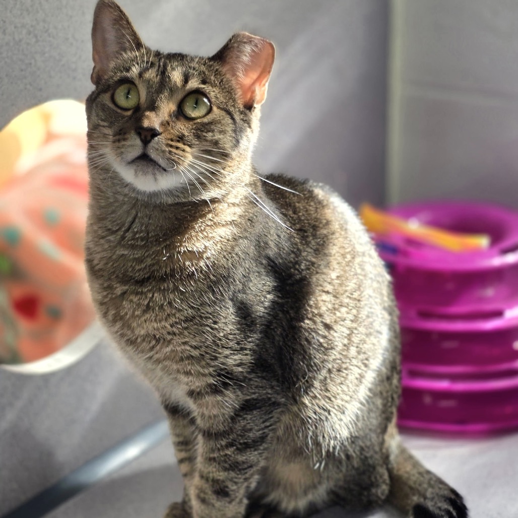 Kay Rose is the longest guest in our cat room. She is a sweet, quiet girl. After months in the cat room, enduring hundreds of often noisy visitors, she might be a tad shy and a little thorny. But like the rose, those thorns serve to protect a beautiful flower. Kay Rose just needs a little time to warm up, but when she does, she just might let you rub her belly. She loves a calm environment. Kay Rose likes to be the only cat. Kay Rose eats special dry food for her sensitive digestive system - Hill’s Prescription Diet Z/D (4 lb bag - $29). She eats about 1/2 cup a day. She’s well worth it! Kay Rose is a lovely brown tabby with big, dreamy, green eyes that don’t miss a thing. Come meet Kay Rose. Spend some time with her and fall in love. Apply for her at ghhs.org.