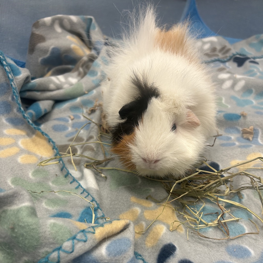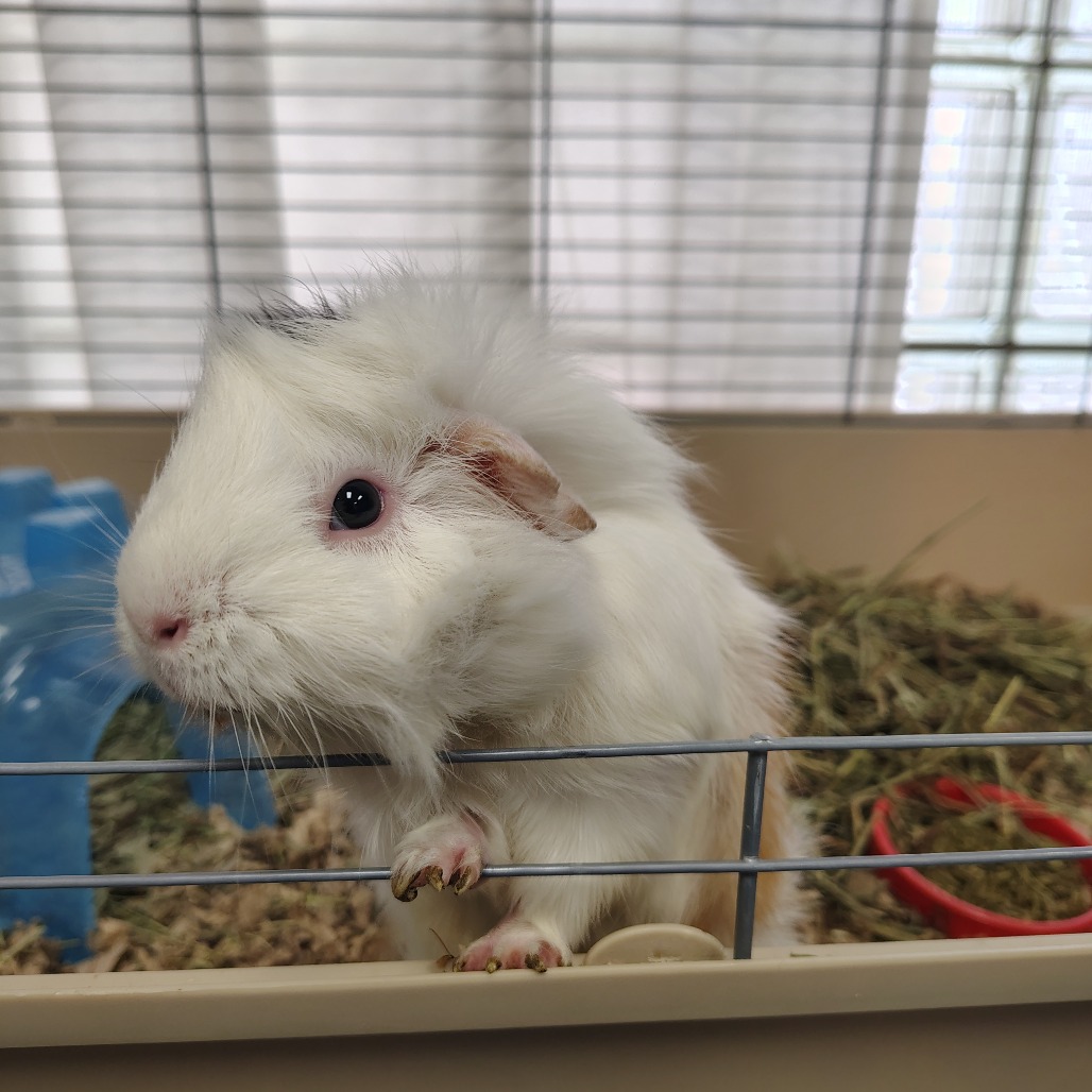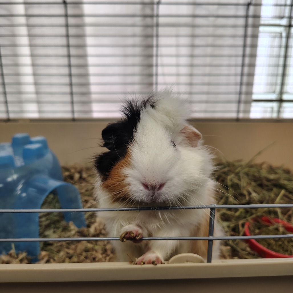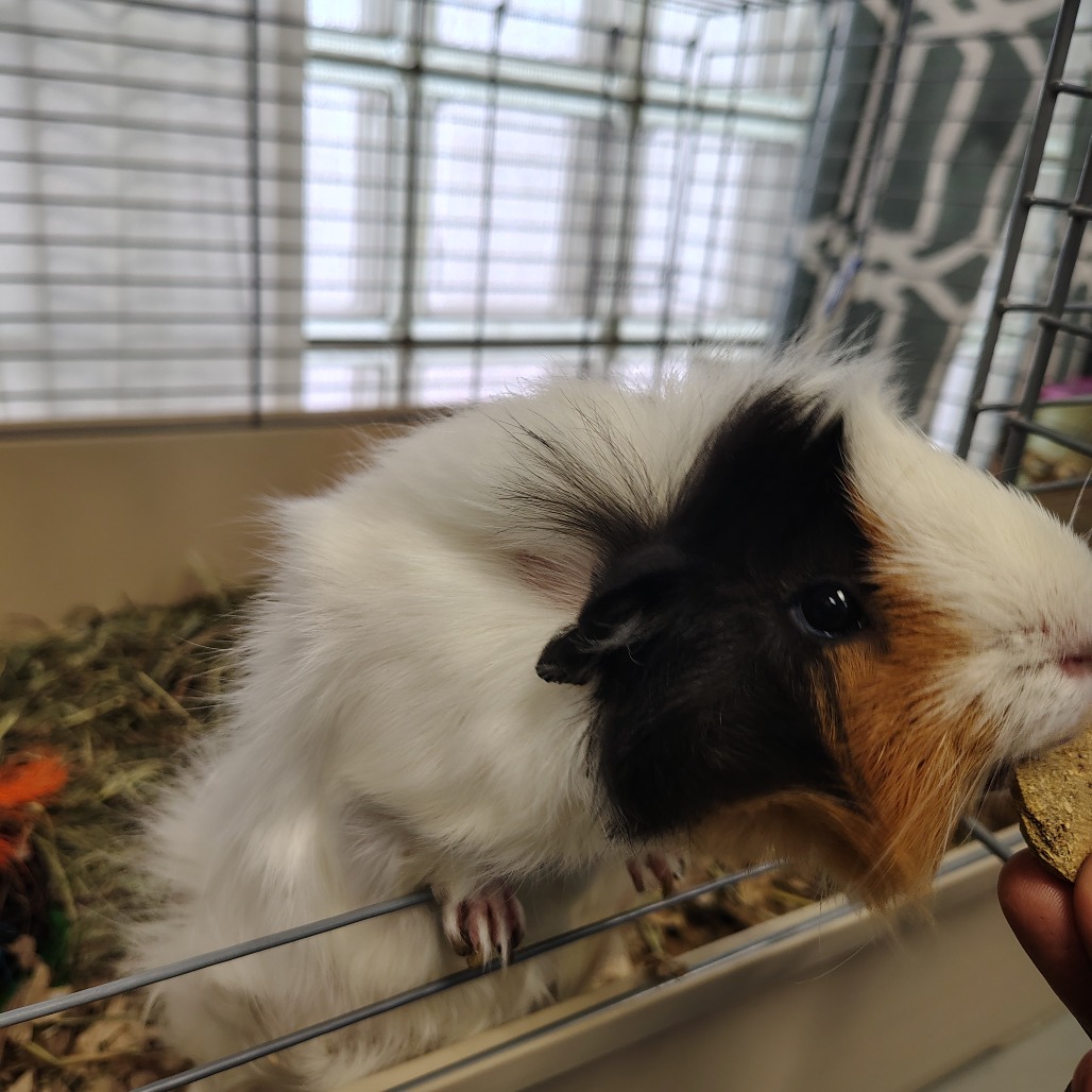 Meet Lovie – Your New Snack Buddy! 🐹❤️ Say hello to Lovie, a charming little Abyssinian guinea pig with a unique personality and irresistible fluff! Lovie may not be the cuddliest companion (she prefers her space when it comes to being held), but she more than makes up for it with her enthusiasm for treats and her sweet nature. Lovie is a total foodie — she loves her veggies and fruit and isn't picky at all. Whether it's a crunchy carrot or a juicy strawberry, she’ll greet you with the most delightful squeaks when she hears you coming with goodies. Her adorable little noises and curious face peeking out from her enclosure will brighten your day every time you walk into the room. This girl thrives with gentle interaction, plenty of hay, and a patient home that respects her preferences. If you're looking for a low-maintenance, snack-loving friend who brings joy with her sounds and personality, Lovie is your girl! Apply at ghhs.org
