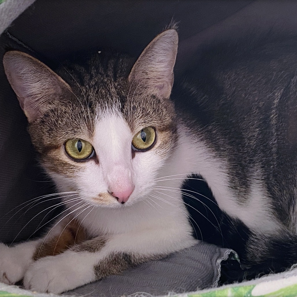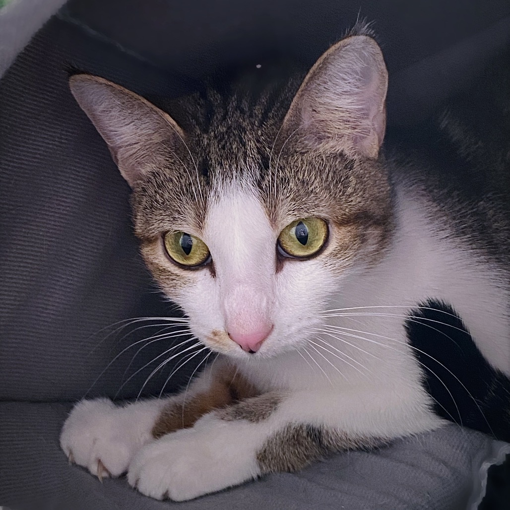 Lulu is a frightened cat who is still adjusting after coming to us from another rescue. She is not comfortable with handling yet and prefers to observe from a safe hiding spot. Lulu will need a patient, experienced adopter and a low-stress home where she can move at her own pace.