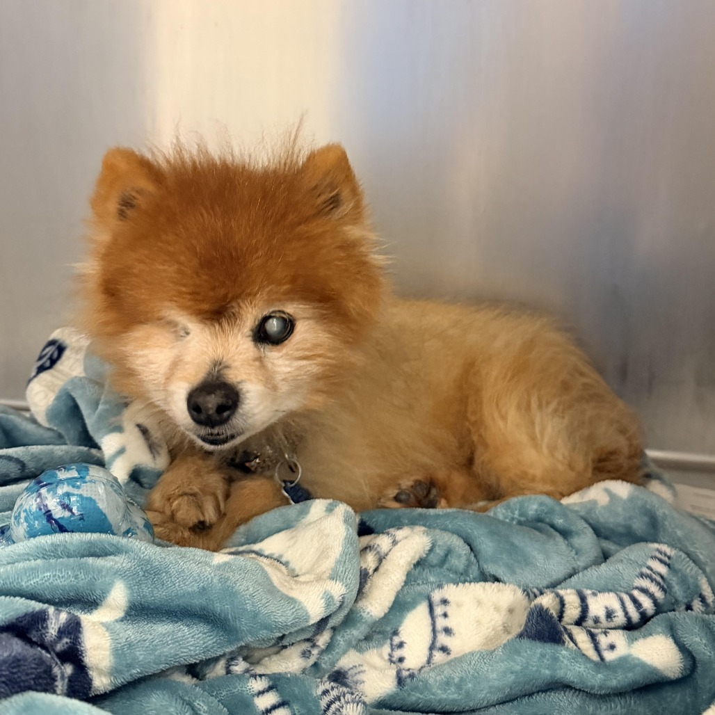Red is a sweet senior Pomeranian with plenty of spunk still left in him! Though he only has one eye and is partially blind, he gets around just fine and doesn’t let it slow him down. Red enjoys strolling around the play yard and soaking up the fresh air. One of his favorite things? A tasty scoop of wet food mixed into his meals! Red may be older, but his spirit is still shining bright.