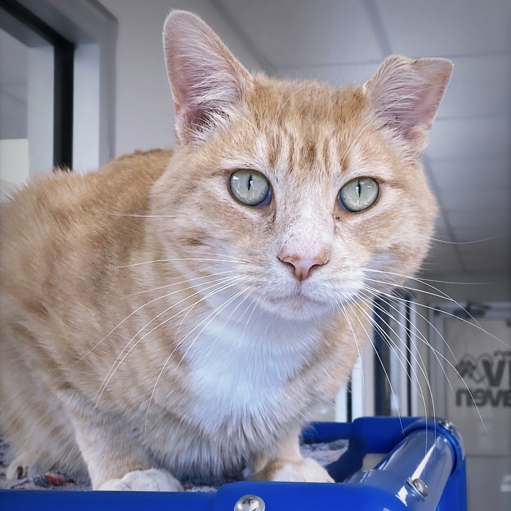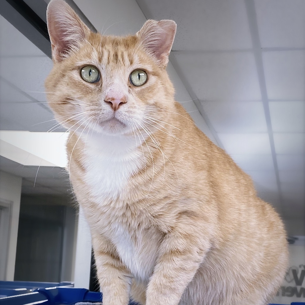 Big SAMMY BOY! Sammy a FIV+ guest in our Haven. He is a big boy with a big heart, and an even bigger love for people. He came from an outdoor life where he got into some scuffles, giving him that distinctive right ear. Sammy Boy actually gets along with other friendly cats. He is super affectionate and loves snuggles, pets and attention. Sammy Boy is BIG. Really BIG. He’s 17 lbs of glorious, squeezable bigness. He has a soft ginger coat and beautiful peridot eyes. FIV+ cats can live long, happy lives. If you’re looking for a sweet, cuddly companion who will adore you back, Sammy Boy is your guy. Apply at GHHS.org.
