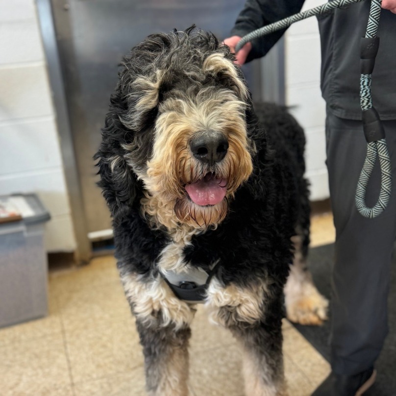 Sir Rufus is a BIG, handsome doodle with an even bigger heart. Friendly, social, and confident, this gentle giant gets along with dogs, cats, and kids alike. He’s a seasoned pro at doggy daycare and knows how to make friends wherever he goes. Sir Rufus sometimes likes to use his impressive size to his advantage and can be a bit pushy when he doesn't get his way. He’s the kind of dog who wants to be involved in everything and will happily stand guard over his people as their loyal knight in shining armor. His beautiful coat does require regular care, including brushing at home and professional grooming every 6–8 weeks, to keep him looking and feeling his best. If you’re searching for a friendly, fun-loving companion with a regal presence and a heart of gold, Sir Rufus is ready to pledge his loyalty to you. Come meet him or apply at ghhs.org