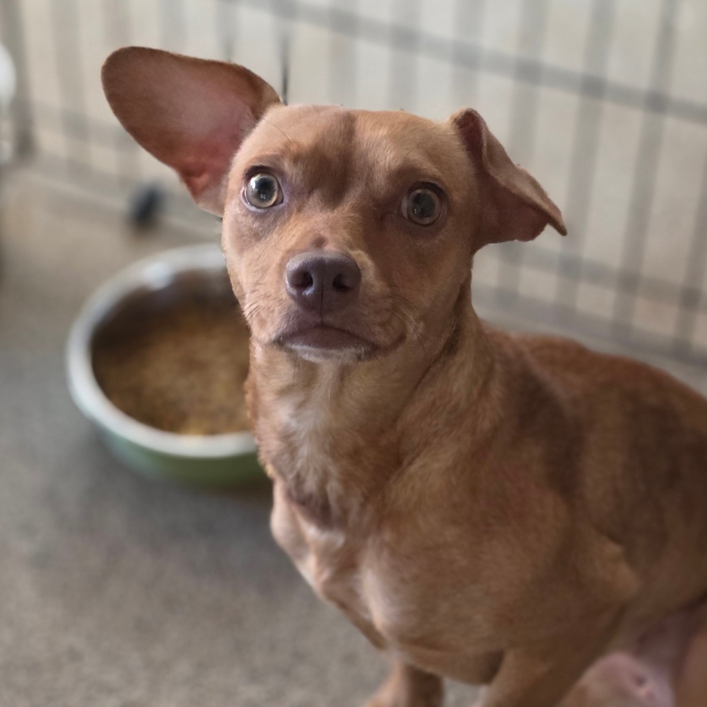 Taffy may be small in size, but her heart is full of quiet hope. She's a gentle soul who’s still learning the world is a safe place. A little shy at first, Taffy tends to stick close to corners or cozy spots—but offer her a soft voice, a slow hand, and a gentle cuddle, and you’ll see her eyes light up with trust. She doesn’t need much—just a calm home, a warm lap, and someone who understands that love takes time. Once she feels safe, she’ll melt into your arms like the sweetest marshmallow. Taffy isn’t the boldest pup, but she just wants what we all do: to feel safe, to be loved, and to have someone to call her person. If you have a little extra patience and a lot of love, Taffy is ready to give you her whole heart.