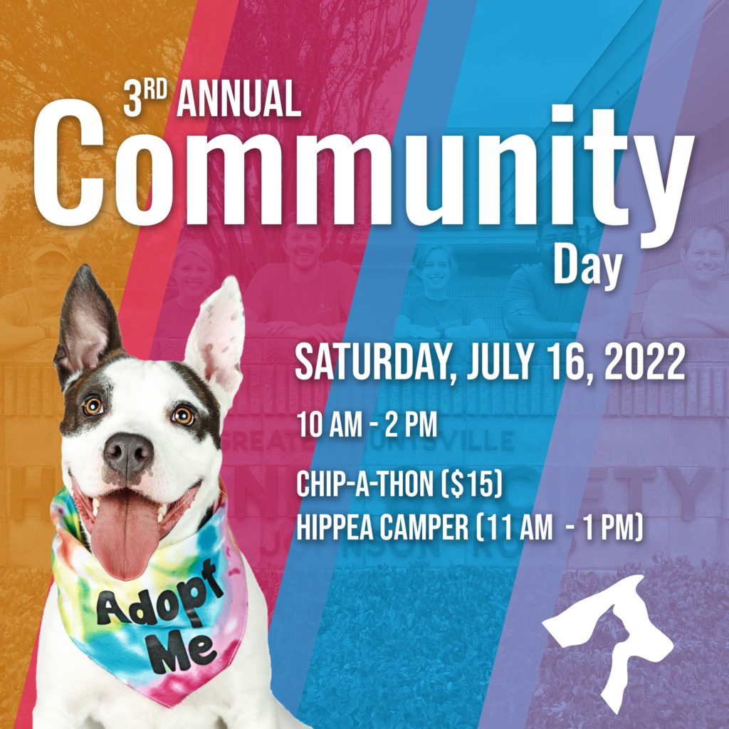 The Greater Huntsville Humane Society (GHHS) will be hosting the 3rd Annual Community Day on Saturday, July 16th from 10AM-2PM in honor of National Lost Pet Prevention Month.